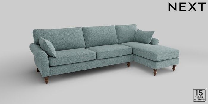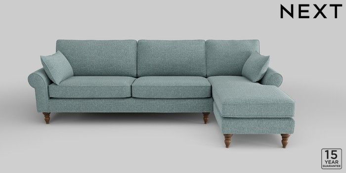 7.2.10 Mallory Medium Sofa Chaise - Right Hand Chunky Chenille Light Teal Green High Turned - Mid | Made Click here to use our website with more accessibility support, for example screen readers