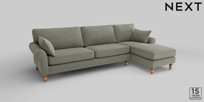 7.2.10 Mallory Medium Sofa Chaise - Right Hand Chunky Marl Light Olive Green High Turned - Light | Made Click here to use our website with more accessibility support, for example screen readers