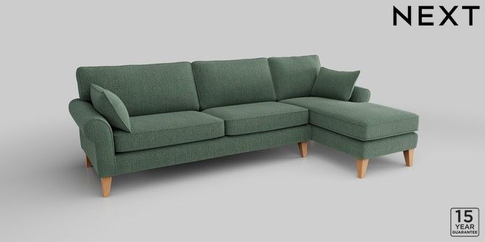 7.2.10 Mallory Medium Sofa Chaise - Right Hand Chunky Texture Mid Forest Green High Tapered - Light | Made Click here to use our website with more accessibility support, for example screen readers