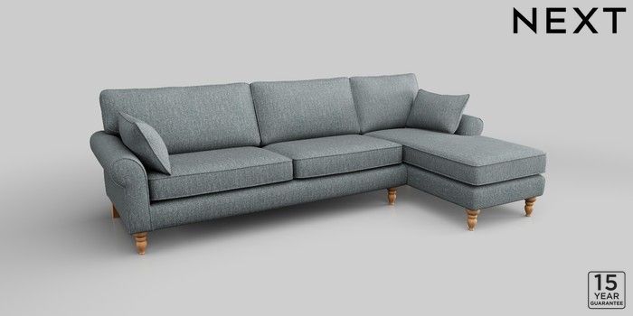 7.2.10 Mallory Medium Sofa Chaise - Right Hand Chunky Weave Mid Blue High Turned - Light | Made Click here to use our website with more accessibility support, for example screen readers
