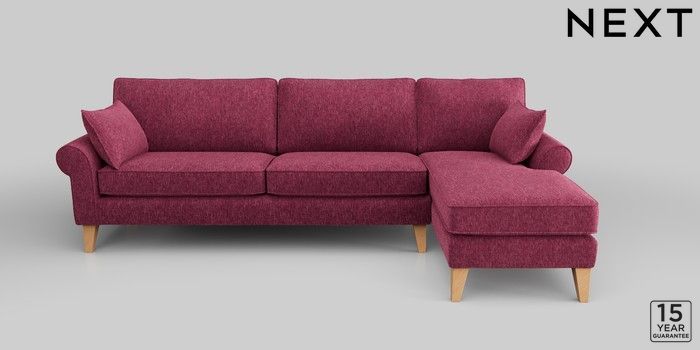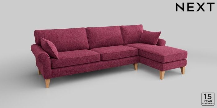 7.2.10 Mallory Medium Sofa Chaise - Right Hand Cotswold Chenille Dark Raspberry Pink High Tapered - Light | Made Click here to use our website with more accessibility support, for example screen readers