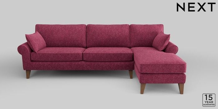 7.2.10 Mallory Medium Sofa Chaise - Right Hand Cotswold Chenille Dark Raspberry Pink High Tapered - Mid | Made Click here to use our website with more accessibility support, for example screen readers