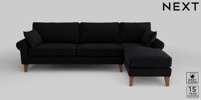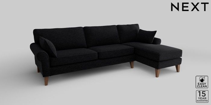 7.2.10 Mallory Medium Sofa Chaise - Right Hand Fine Chenille Easy Clean Black High Tapered - Mid | Made Click here to use our website with more accessibility support, for example screen readers