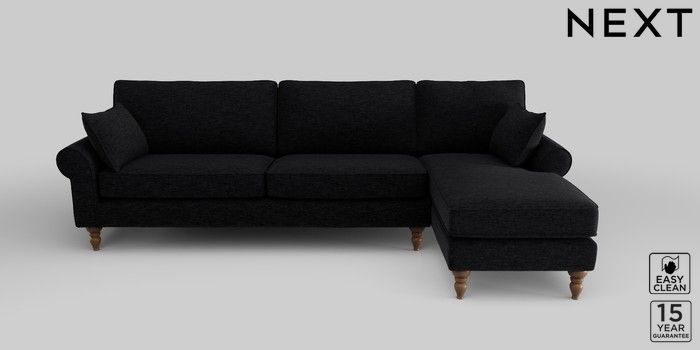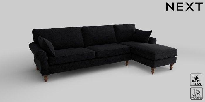 7.2.10 Mallory Medium Sofa Chaise - Right Hand Fine Chenille Easy Clean Black High Turned - Mid | Made Click here to use our website with more accessibility support, for example screen readers