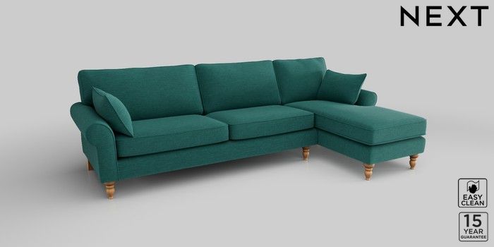 7.2.10 Mallory Medium Sofa Chaise - Right Hand Fine Chenille Easy Clean Dark Juniper Green High Turned - Light | Made Click here to use our website with more accessibility support, for example screen readers