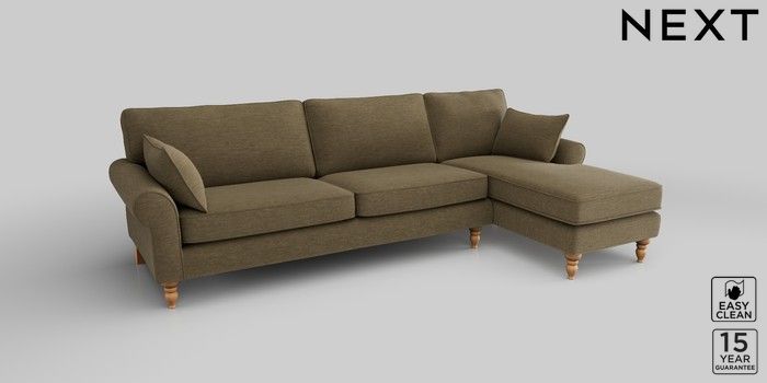 7.2.10 Mallory Medium Sofa Chaise - Right Hand Fine Chenille Easy Clean Dark Moss Green High Turned - Light | Made Click here to use our website with more accessibility support, for example screen readers