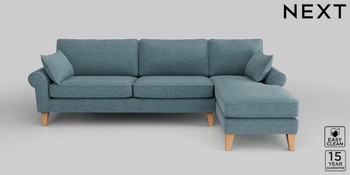 7.2.10 Mallory Medium Sofa Chaise - Right Hand Fine Chenille Easy Clean Mid Blue High Tapered - Light | Made Click here to use our website with more accessibility support, for example screen readers