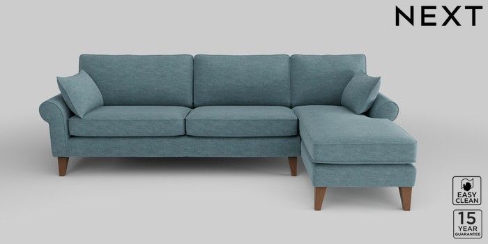 7.2.10 Mallory Medium Sofa Chaise - Right Hand Fine Chenille Easy Clean Mid Blue High Tapered - Mid | Made Click here to use our website with more accessibility support, for example screen readers