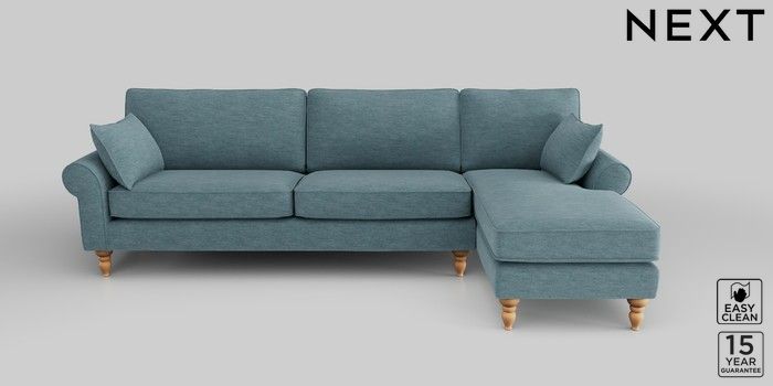 7.2.10 Mallory Medium Sofa Chaise - Right Hand Fine Chenille Easy Clean Mid Blue High Turned - Light | Made Click here to use our website with more accessibility support, for example screen readers