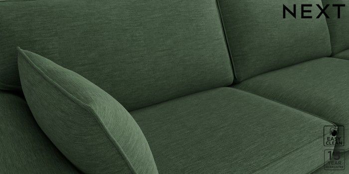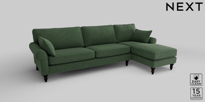 7.2.10 Mallory Medium Sofa Chaise - Right Hand Fine Chenille Easy Clean Mid Khaki Green High Turned - Dark | Made Click here to use our website with more accessibility support, for example screen readers