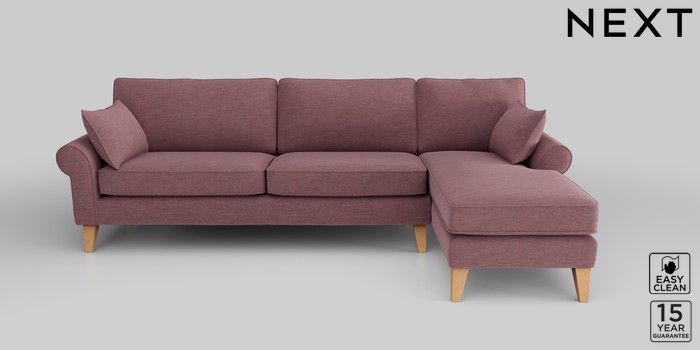 7.2.10 Mallory Medium Sofa Chaise - Right Hand Fine Chenille Easy Clean Mid Mulberry Purple High Tapered - Light | Made Click here to use our website with more accessibility support, for example screen readers