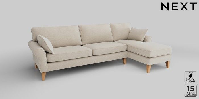 7.2.10 Mallory Medium Sofa Chaise - Right Hand Fine Chenille Easy Clean Oyster High Tapered - Light | Made Click here to use our website with more accessibility support, for example screen readers