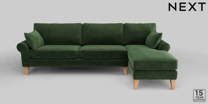 7.2.10 Mallory Medium Sofa Chaise - Right Hand Luxe Chenille Dark Green High Tapered - Light | Made Click here to use our website with more accessibility support, for example screen readers