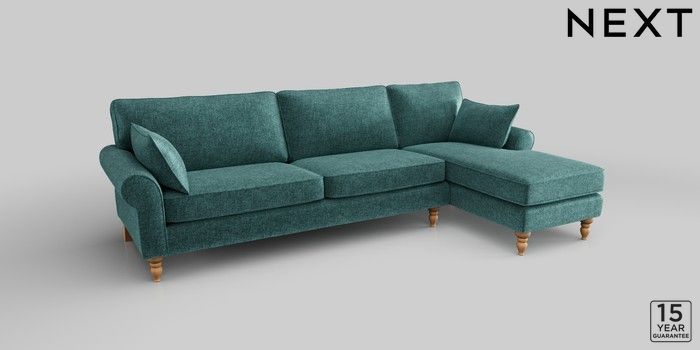 7.2.10 Mallory Medium Sofa Chaise - Right Hand Plush Chenille Dark Teal Green High Turned - Light | Made Click here to use our website with more accessibility support, for example screen readers