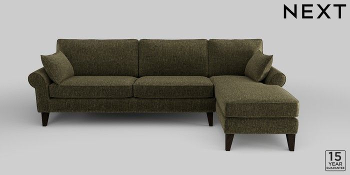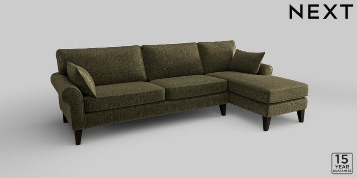 7.2.10 Mallory Medium Sofa Chaise - Right Hand Plush Chenille Moss Green High Tapered - Dark | Made Click here to use our website with more accessibility support, for example screen readers