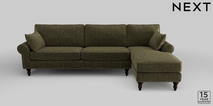 7.2.10 Mallory Medium Sofa Chaise - Right Hand Plush Chenille Moss Green High Turned - Dark | Made Click here to use our website with more accessibility support, for example screen readers