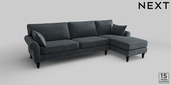 7.2.10 Mallory Medium Sofa Chaise - Right Hand Plush Chenille Slate Blue High Turned - Dark | Made Click here to use our website with more accessibility support, for example screen readers