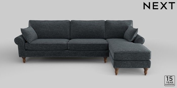 7.2.10 Mallory Medium Sofa Chaise - Right Hand Plush Chenille Slate Blue High Turned - Mid | Made Click here to use our website with more accessibility support, for example screen readers