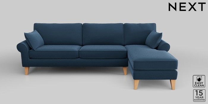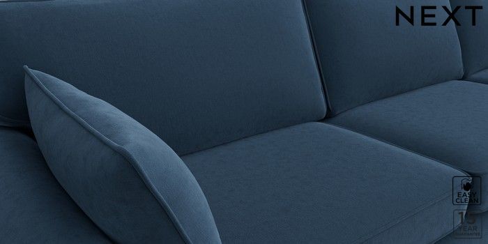 7.2.10 Mallory Medium Sofa Chaise - Right Hand Plush Velvet Easy Clean Airforce Blue High Tapered - Light | Made Click here to use our website with more accessibility support, for example screen readers