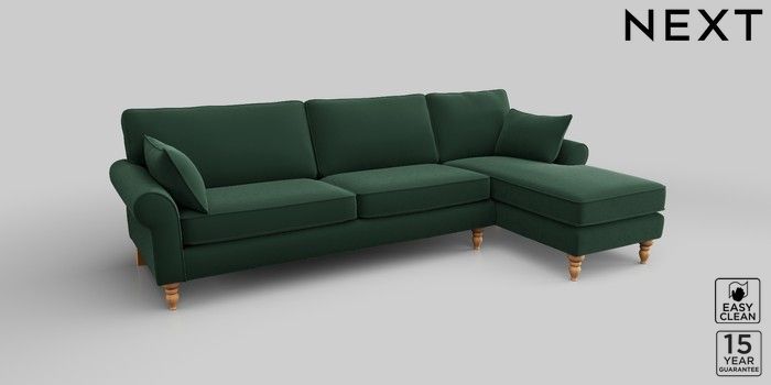 7.2.10 Mallory Medium Sofa Chaise - Right Hand Plush Velvet Easy Clean Bottle Green High Turned - Light | Made Click here to use our website with more accessibility support, for example screen readers