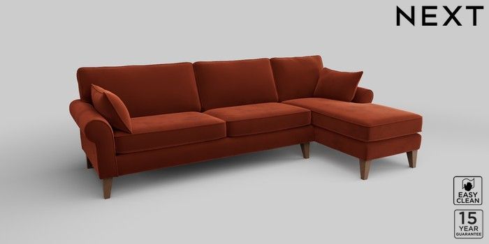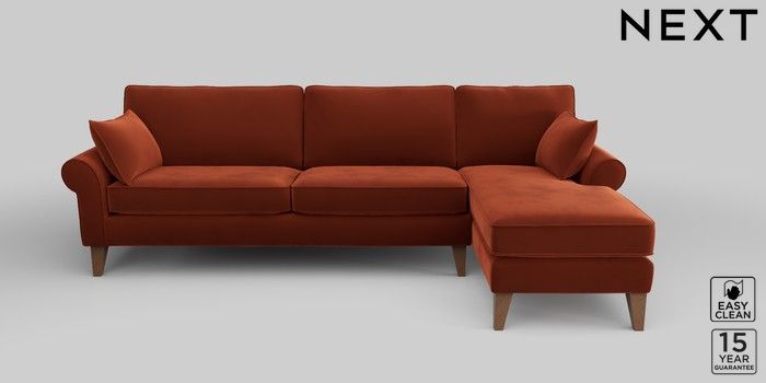 7.2.10 Mallory Medium Sofa Chaise - Right Hand Plush Velvet Easy Clean Ginger Orange High Tapered - Mid | Made Click here to use our website with more accessibility support, for example screen readers