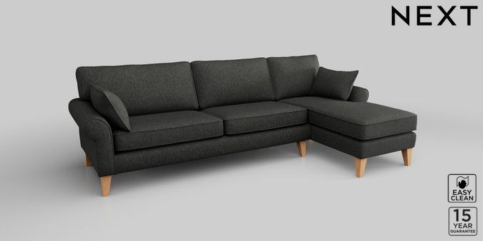 7.2.10 Mallory Medium Sofa Chaise - Right Hand Tweedy Blend Easy Clean Charcoal Grey High Tapered - Light | Made Click here to use our website with more accessibility support, for example screen readers