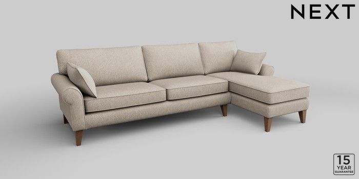 7.2.10 Mallory Medium Sofa Chaise - Right Hand Tweedy Chenille Mid Natural High Tapered - Mid | Made Click here to use our website with more accessibility support, for example screen readers