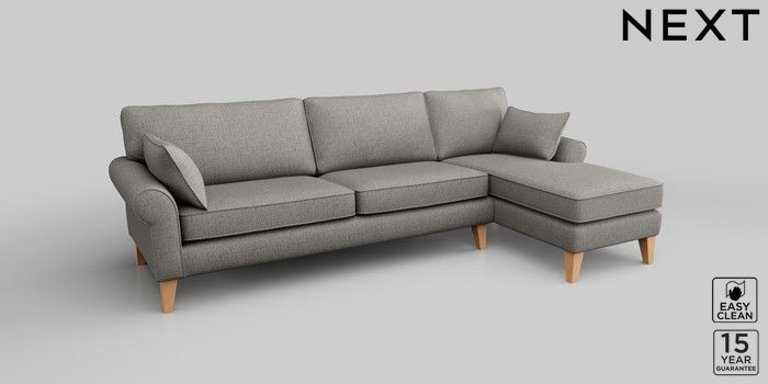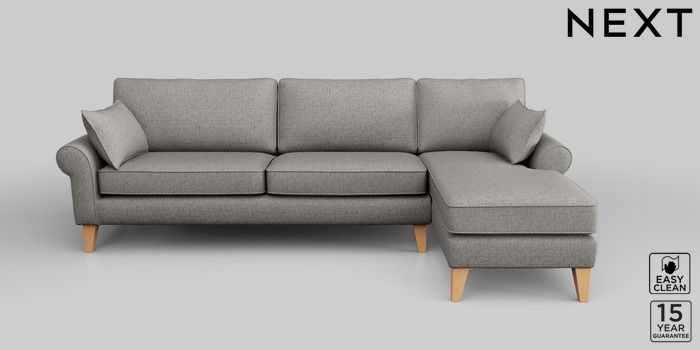 7.2.10 Mallory Medium Sofa Chaise - Right Hand Woven Chenille Easy Clean Light Grey High Tapered - Light | Made Click here to use our website with more accessibility support, for example screen readers