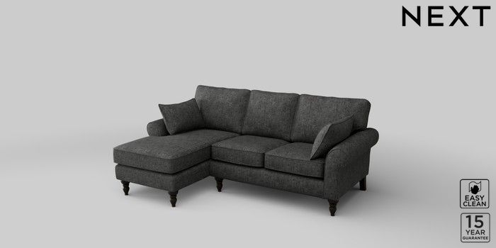 7.2.10 Mallory Small Sofa Chaise - Left Hand Boucle Weave Easy Clean Charcoal Grey High Turned - Dark | Made Click here to use our website with more accessibility support, for example screen readers