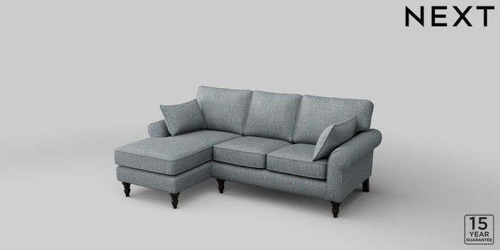 7.2.10 Mallory Small Sofa Chaise - Left Hand Chunky Weave Mid Blue High Turned - Dark | Made Click here to use our website with more accessibility support, for example screen readers