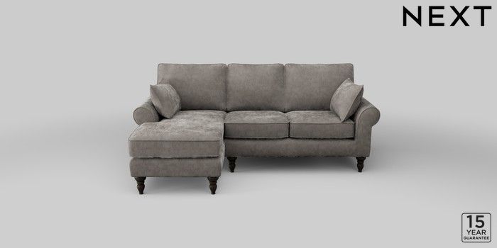 7.2.10 Mallory Small Sofa Chaise - Left Hand Distressed Velour French Grey High Turned - Dark | Made Click here to use our website with more accessibility support, for example screen readers