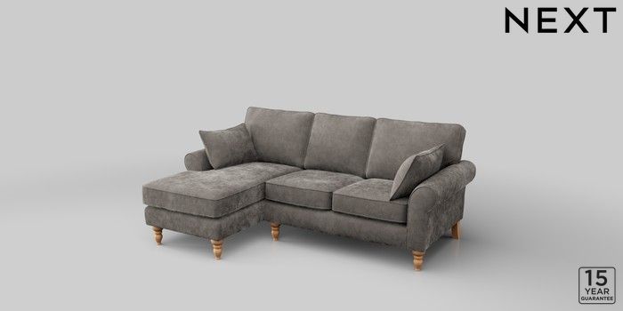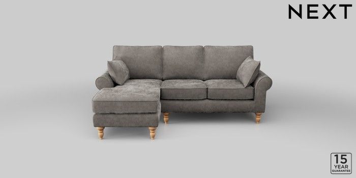 7.2.10 Mallory Small Sofa Chaise - Left Hand Distressed Velour French Grey High Turned - Light | Made Click here to use our website with more accessibility support, for example screen readers