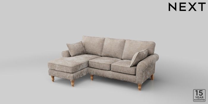 7.2.10 Mallory Small Sofa Chaise - Left Hand Distressed Velour Mid Natural High Turned - Light | Made Click here to use our website with more accessibility support, for example screen readers