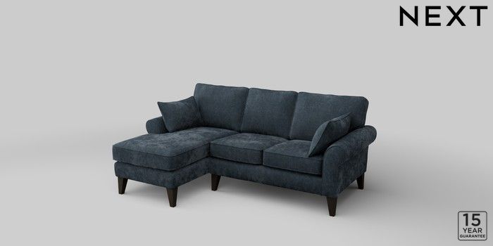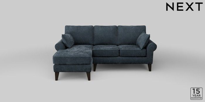7.2.10 Mallory Small Sofa Chaise - Left Hand Distressed Velour Midnight Blue High Tapered - Dark | Made Click here to use our website with more accessibility support, for example screen readers