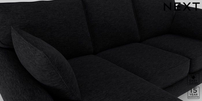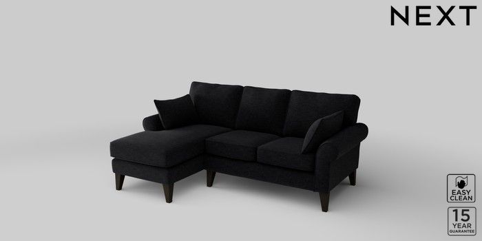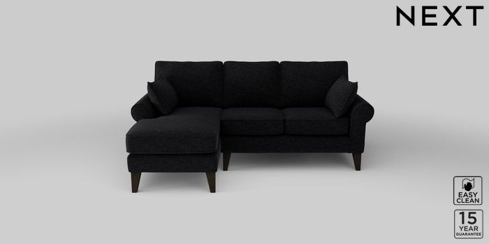 7.2.10 Mallory Small Sofa Chaise - Left Hand Fine Chenille Easy Clean Black High Tapered - Dark | Made Click here to use our website with more accessibility support, for example screen readers