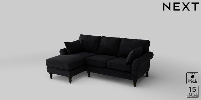 7.2.10 Mallory Small Sofa Chaise - Left Hand Fine Chenille Easy Clean Black High Turned - Dark | Made Click here to use our website with more accessibility support, for example screen readers
