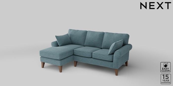 7.2.10 Mallory Small Sofa Chaise - Left Hand Fine Chenille Easy Clean Mid Blue High Tapered - Mid | Made Click here to use our website with more accessibility support, for example screen readers