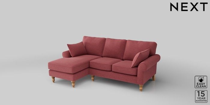 7.2.10 Mallory Small Sofa Chaise - Left Hand Fine Chenille Easy Clean Mid Pink High Turned - Light | Made Click here to use our website with more accessibility support, for example screen readers