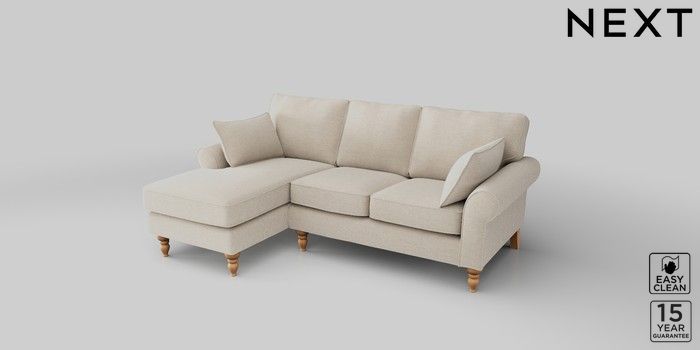 7.2.10 Mallory Small Sofa Chaise - Left Hand Fine Chenille Easy Clean Oyster High Turned - Light | Made Click here to use our website with more accessibility support, for example screen readers