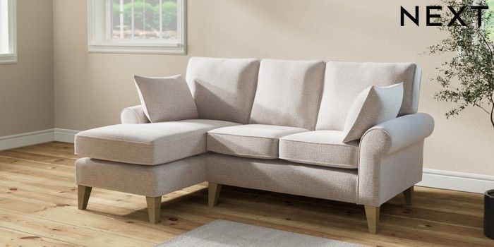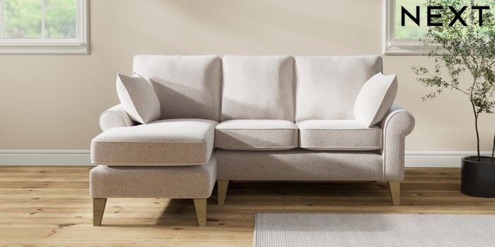7.2.10 Mallory Small Sofa Chaise - Left Hand Multi Weave Oyster High Tapered - Light | Made Click here to use our website with more accessibility support, for example screen readers