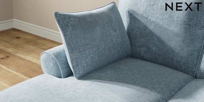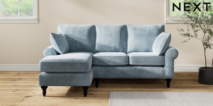 7.2.10 Mallory Small Sofa Chaise - Left Hand Plush Chenille Light Blue High Turned - Dark | Made Click here to use our website with more accessibility support, for example screen readers