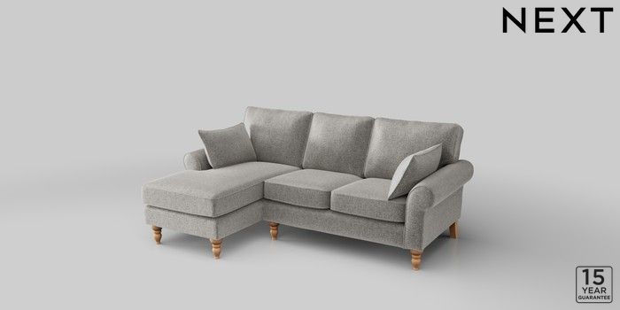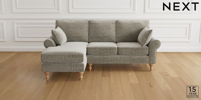 7.2.10 Mallory Small Sofa Chaise - Left Hand Plush Chenille Light Grey High Turned - Light | Made Click here to use our website with more accessibility support, for example screen readers