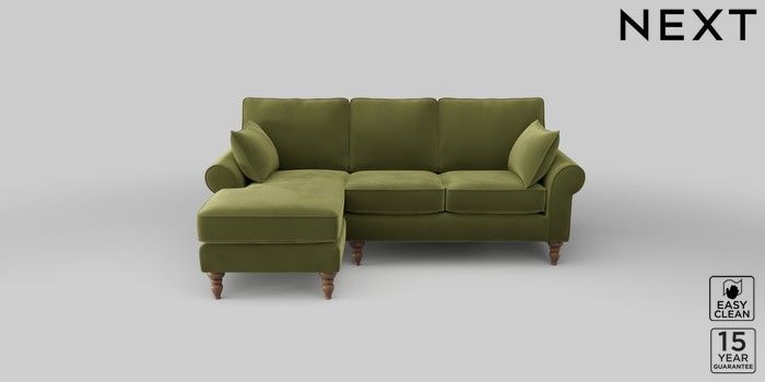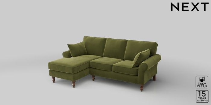 7.2.10 Mallory Small Sofa Chaise - Left Hand Plush Velvet Easy Clean Mid Olive Green High Turned - Mid | Made Click here to use our website with more accessibility support, for example screen readers
