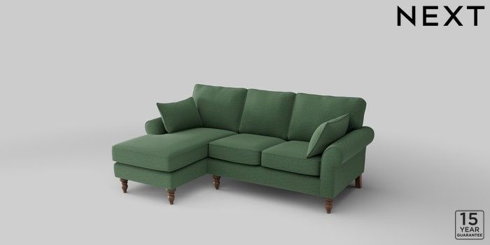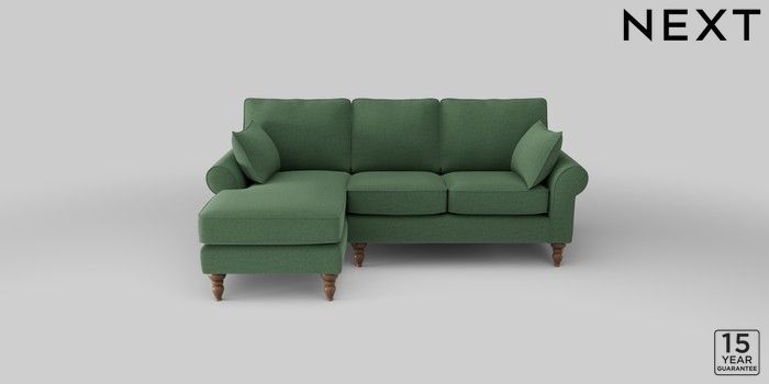 7.2.10 Mallory Small Sofa Chaise - Left Hand Relaxed Linen Look Dark Green High Turned - Mid | Made Click here to use our website with more accessibility support, for example screen readers