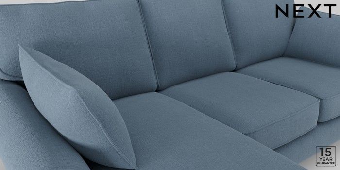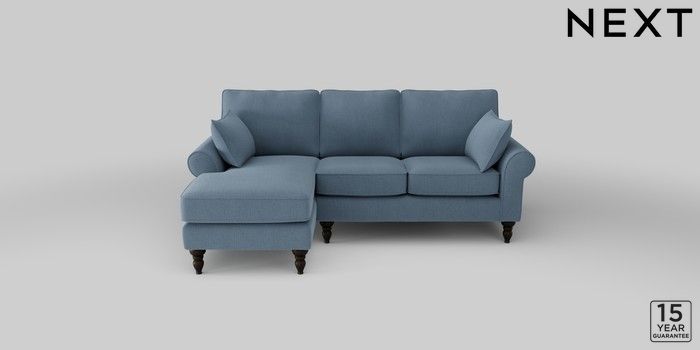 7.2.10 Mallory Small Sofa Chaise - Left Hand Relaxed Linen Look Mid Blue High Turned - Dark | Made Click here to use our website with more accessibility support, for example screen readers