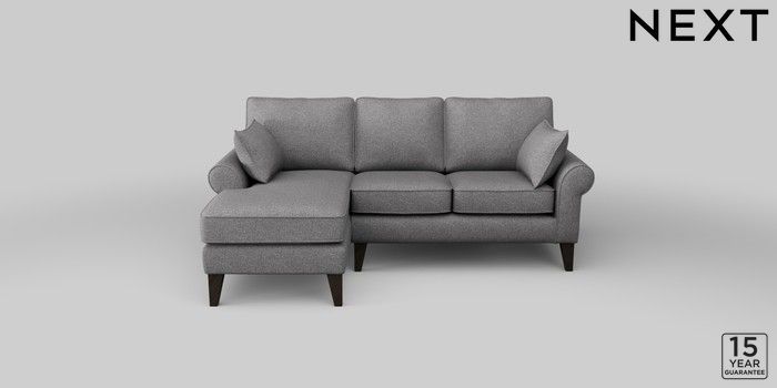 7.2.10 Mallory Small Sofa Chaise - Left Hand Studio Chenille Mid Grey High Tapered - Dark | Made Click here to use our website with more accessibility support, for example screen readers