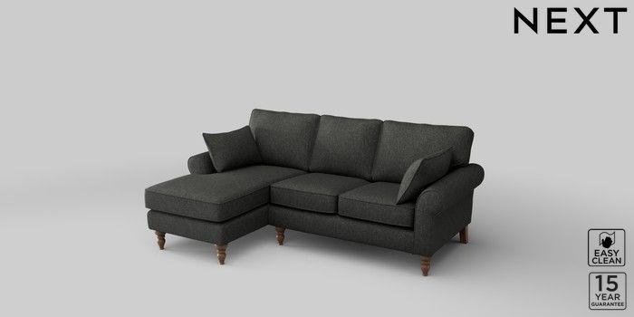 7.2.10 Mallory Small Sofa Chaise - Left Hand Tweedy Blend Easy Clean Charcoal Grey High Turned - Mid | Made Click here to use our website with more accessibility support, for example screen readers
