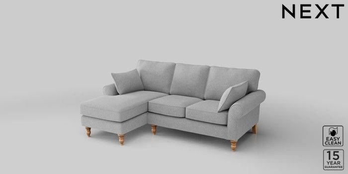 7.2.10 Mallory Small Sofa Chaise - Left Hand Tweedy Blend Easy Clean Light Silver Grey High Turned - Light | Made Click here to use our website with more accessibility support, for example screen readers