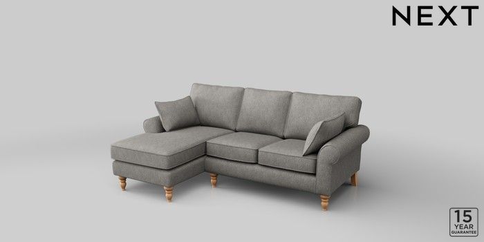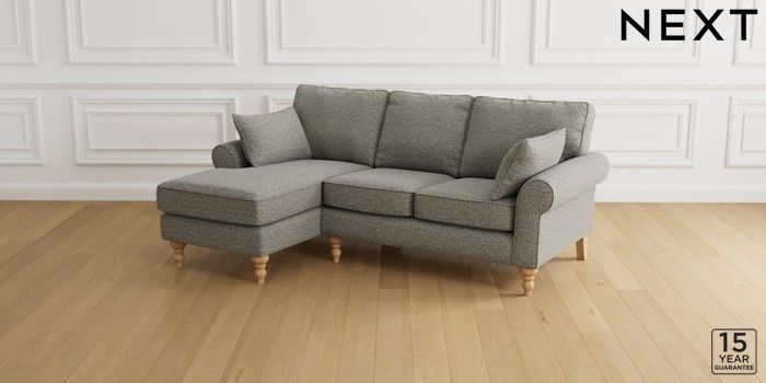 7.2.10 Mallory Small Sofa Chaise - Left Hand Tweedy Chenille Mid Grey High Turned - Light | Made Click here to use our website with more accessibility support, for example screen readers