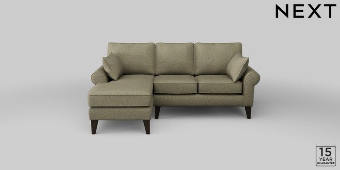 7.2.10 Mallory Small Sofa Chaise - Left Hand Tweedy Chenille Mid Moss Green High Tapered - Dark | Made Click here to use our website with more accessibility support, for example screen readers